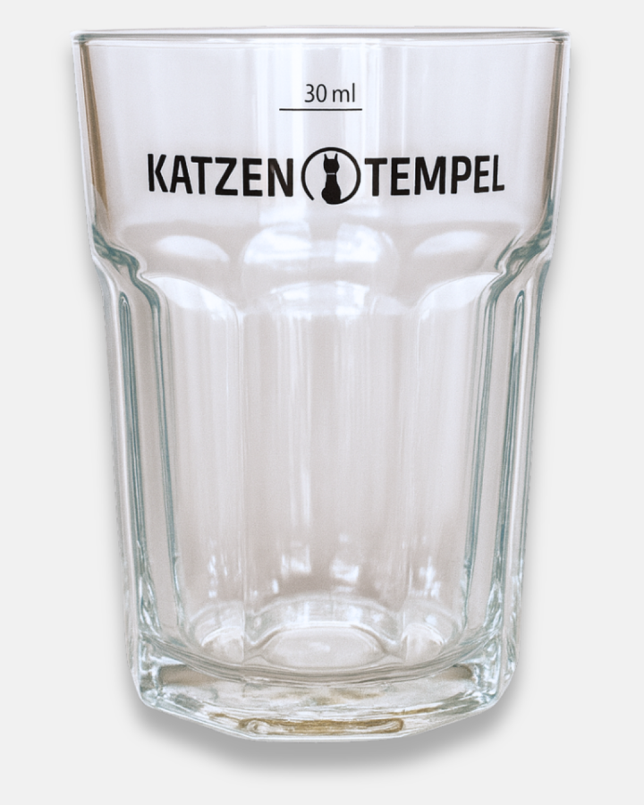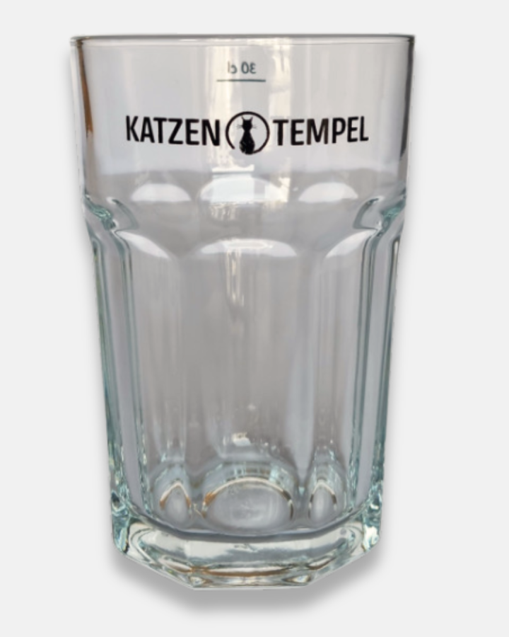 Die stabile, facettierte Form liegt angenehm in der Hand und wirkt gleichzeitig klassisch und hochwertig. Das dezente Katzentempel-Logo verleiht deinem Drink einen Hauch Café-Charme – wie bei uns im Restaurant.